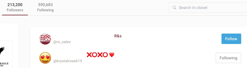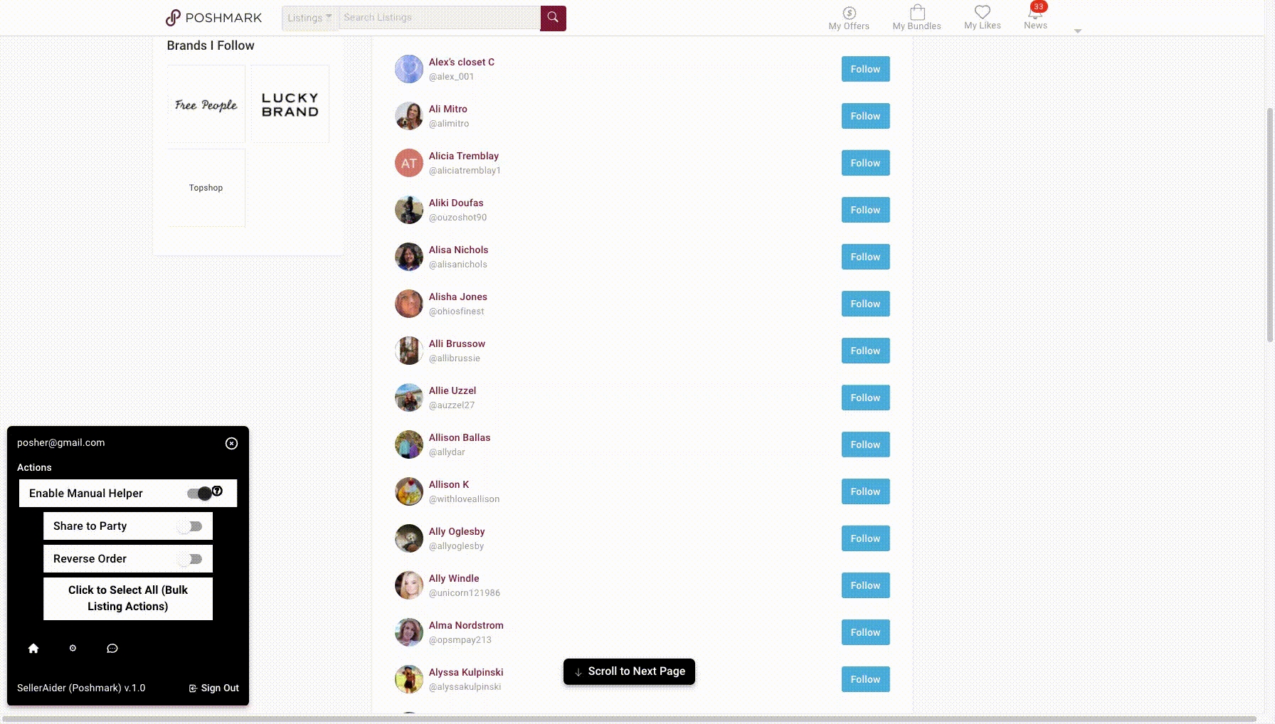Vous pouvez accéder à cette fonctionnalité en allant à la page d'abonnés/suivis sur poshmark (que ce soit la vôtre ou celle de quelqu'un d'autre), cette page est illustrée dans l'image ci-dessus, le bot fonctionnera sur la page des abonnés et sur la page des suivis.