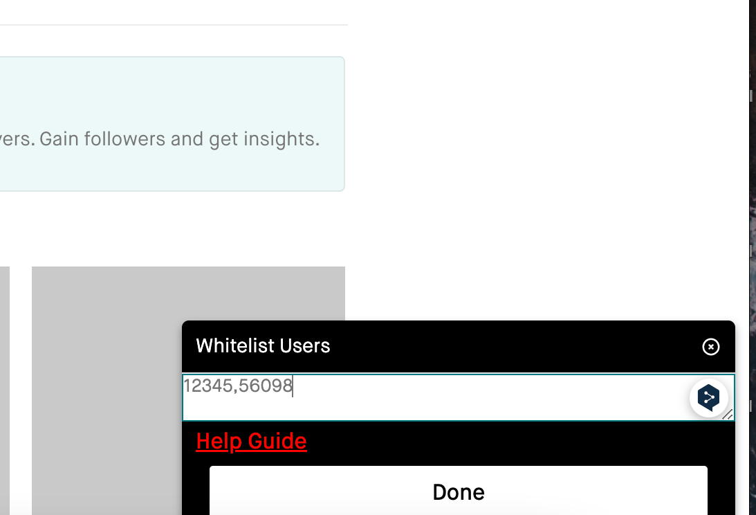 Une fois cela fait, vous pouvez cliquer sur le bouton Liste blanche d'utilisateurs sur le widget qui apparaît en bas à droite.